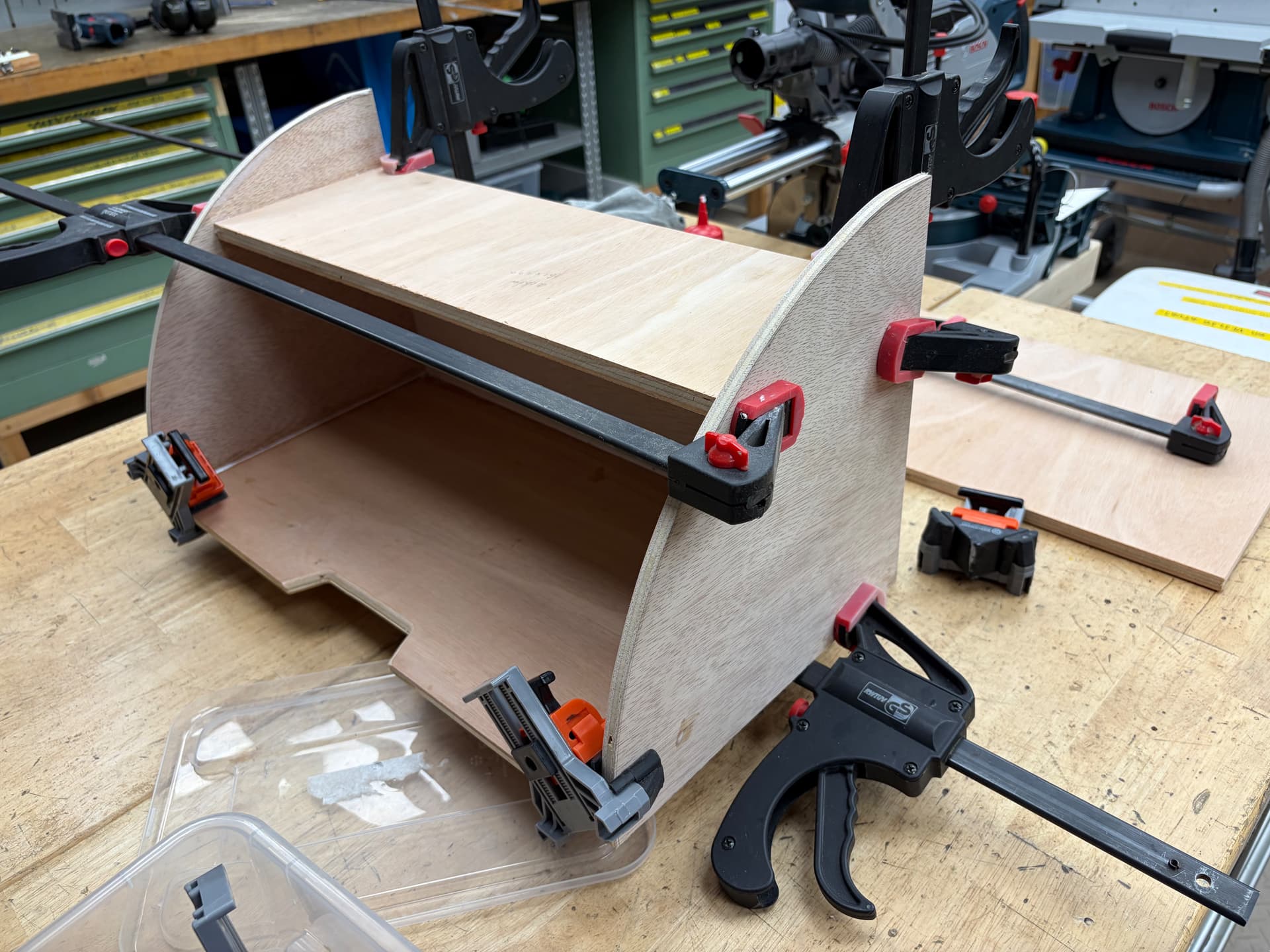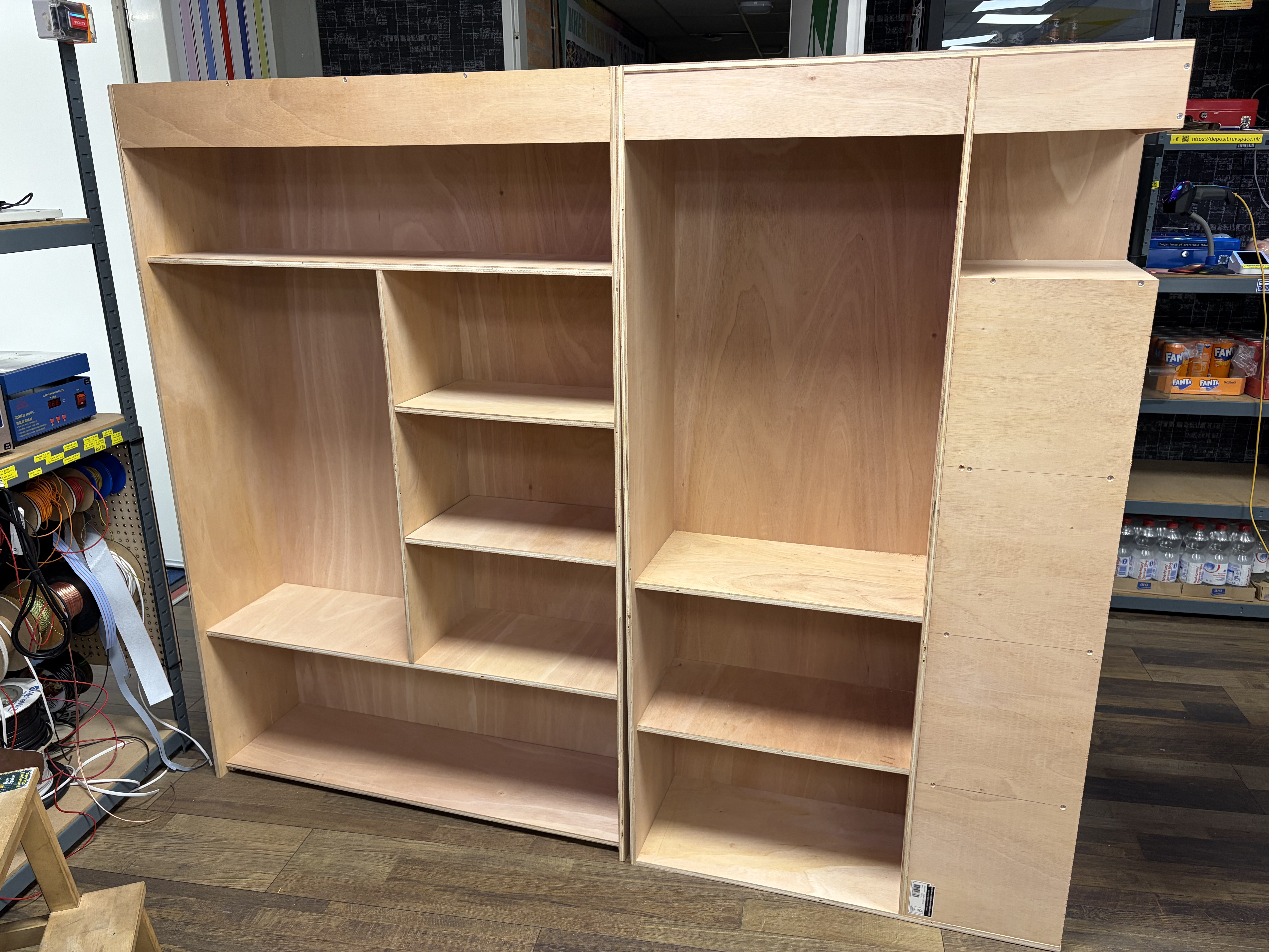 Deuren zagen voor de sparkshack bij de buren, zelf een kantel-lade maken en een beugel voor de beamer getekend en geprint.