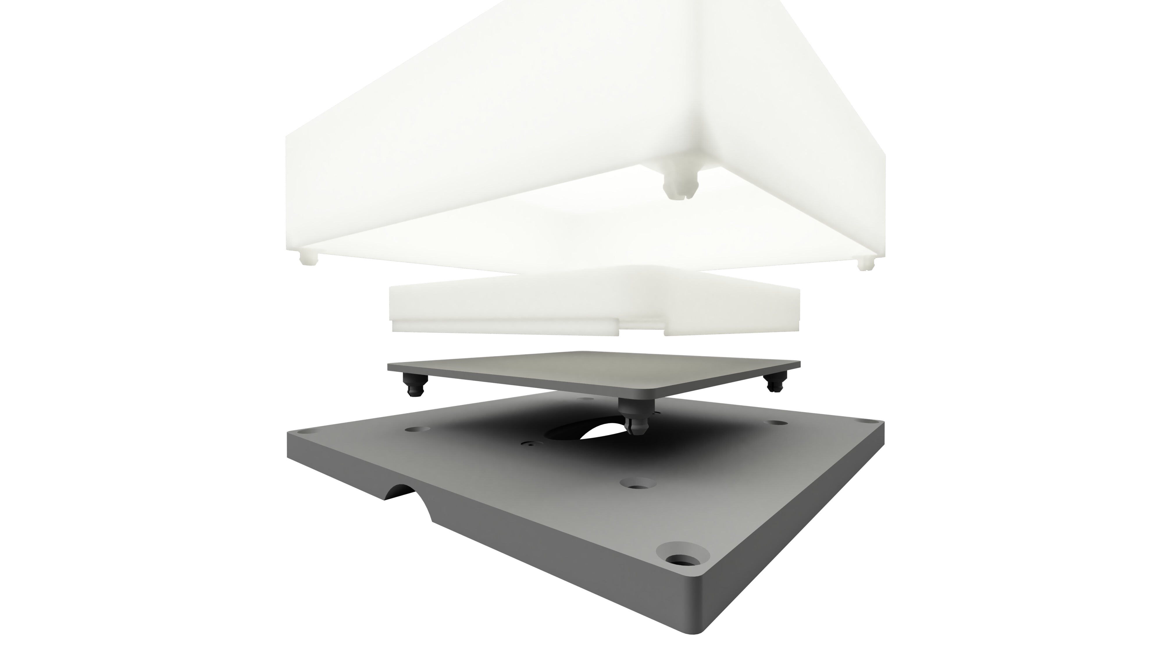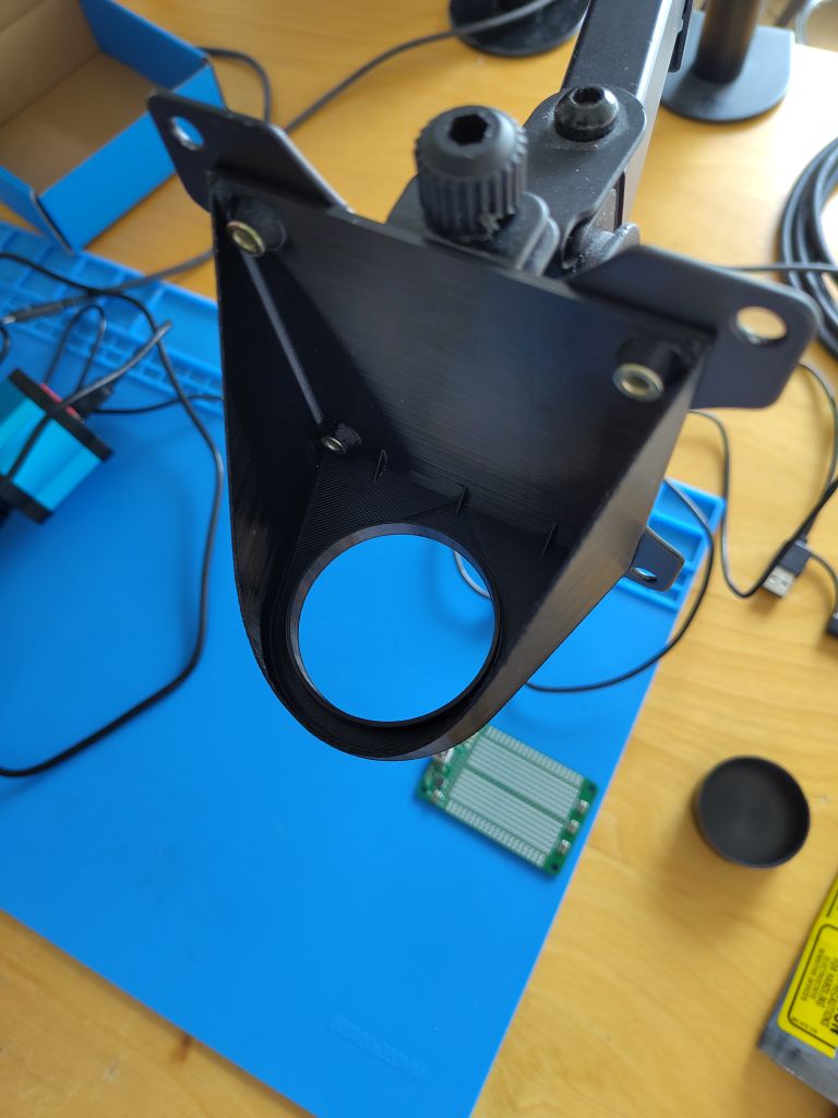 Het is een modulaire base-plate, dat kan worden bevestigd op (bijvoorbeeld) 32mm ø PVC pijp. Door de opening in het midden kan een kabelconnector worden blootgegeven (wij hebben gekozen voor Molex).
