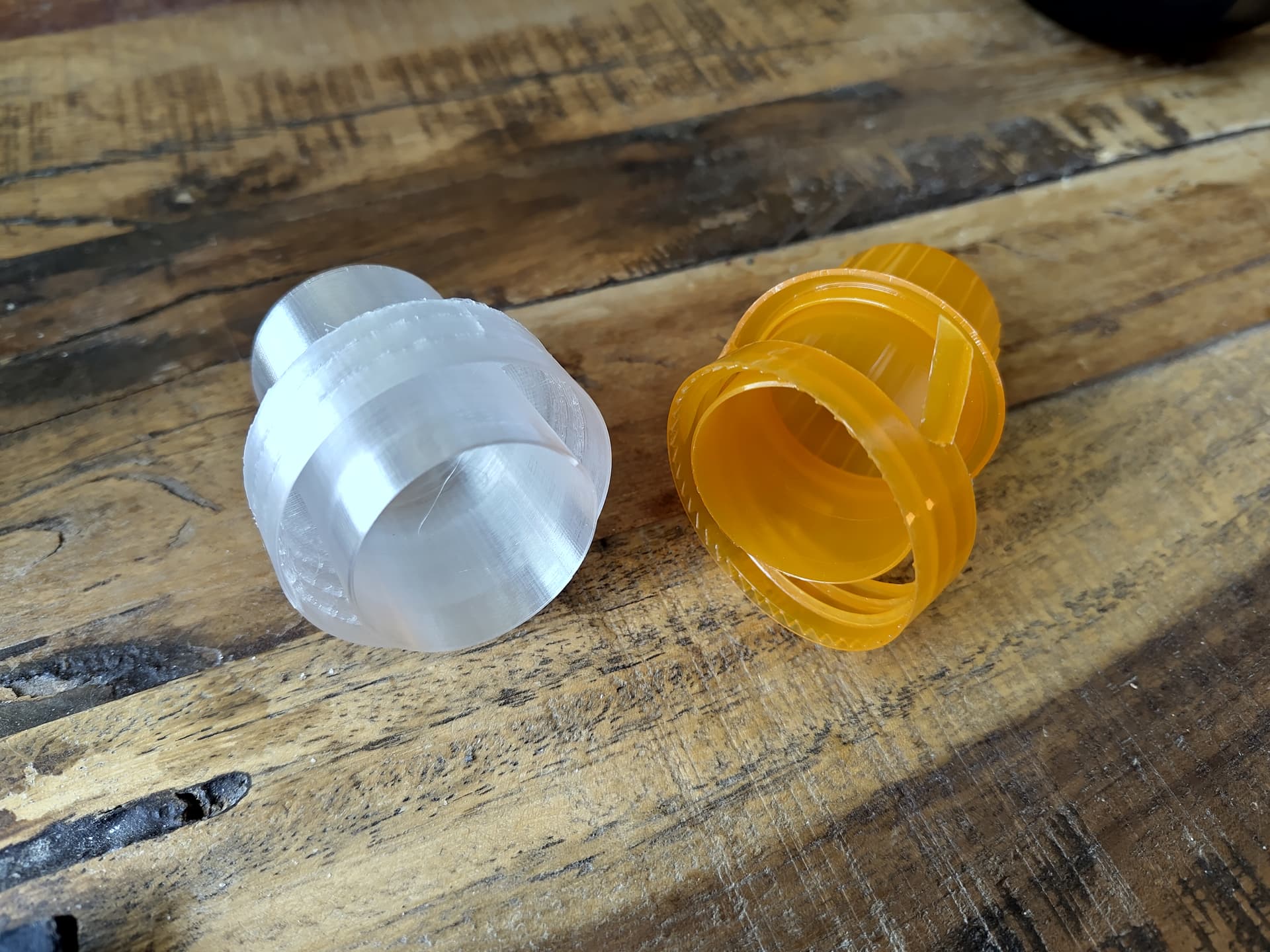 Een fles wasmiddel identificeerde zich heel even als een pot petunias uit een Douglas Adams roman waardoor de dop stuk ging. Nog wel een hoop wasmiddel in de fles dus het dopje overgetekend en geprint in PETG.